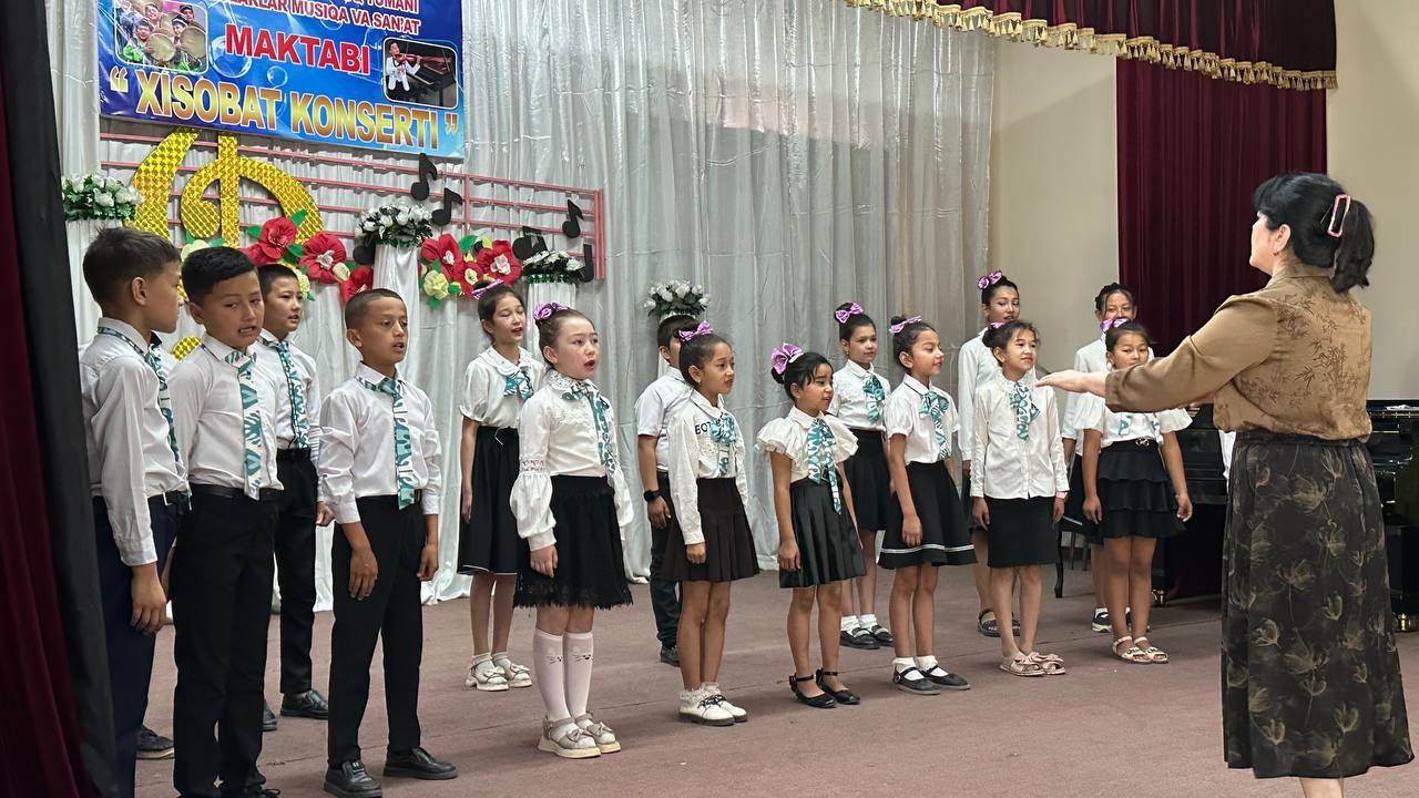 🎵Hisobot konserti davomida o‘quvchilar tomonidan kuy-qo‘shiqlar, cholg‘u asboblarida ijro, raqs va sahna ko‘rinishlari taqdim etildi. Ularning badiiy mahorati, sahnadagi ishonchli chiqishlari tomoshabinlar tomonidan katta qiziqish bilan qarshi olindi.