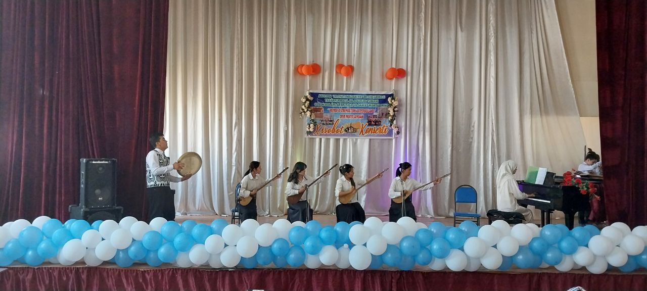 Hisobot konserti davomida o‘quvchilar tomonidan kuy-qo‘shiqlar, cholg‘u asboblarida ijro, raqs va sahna ko‘rinishlari taqdim etildi. Ularning badiiy mahorati, sahnadagi ishonchli chiqishlari tomoshabinlar tomonidan katta qiziqish bilan qarshi olindi.