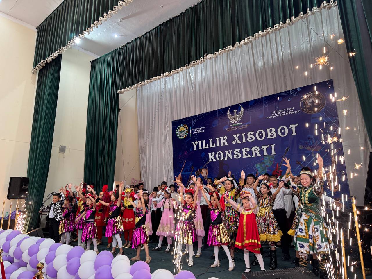 Hisobot konserti davomida o‘quvchilar tomonidan kuy-qo‘shiqlar, cholg‘u asboblarida ijro, raqs va sahna ko‘rinishlari taqdim etildi. Ularning badiiy mahorati, sahnadagi ishonchli chiqishlari tomoshabinlar tomonidan katta qiziqish bilan qarshi olindi.