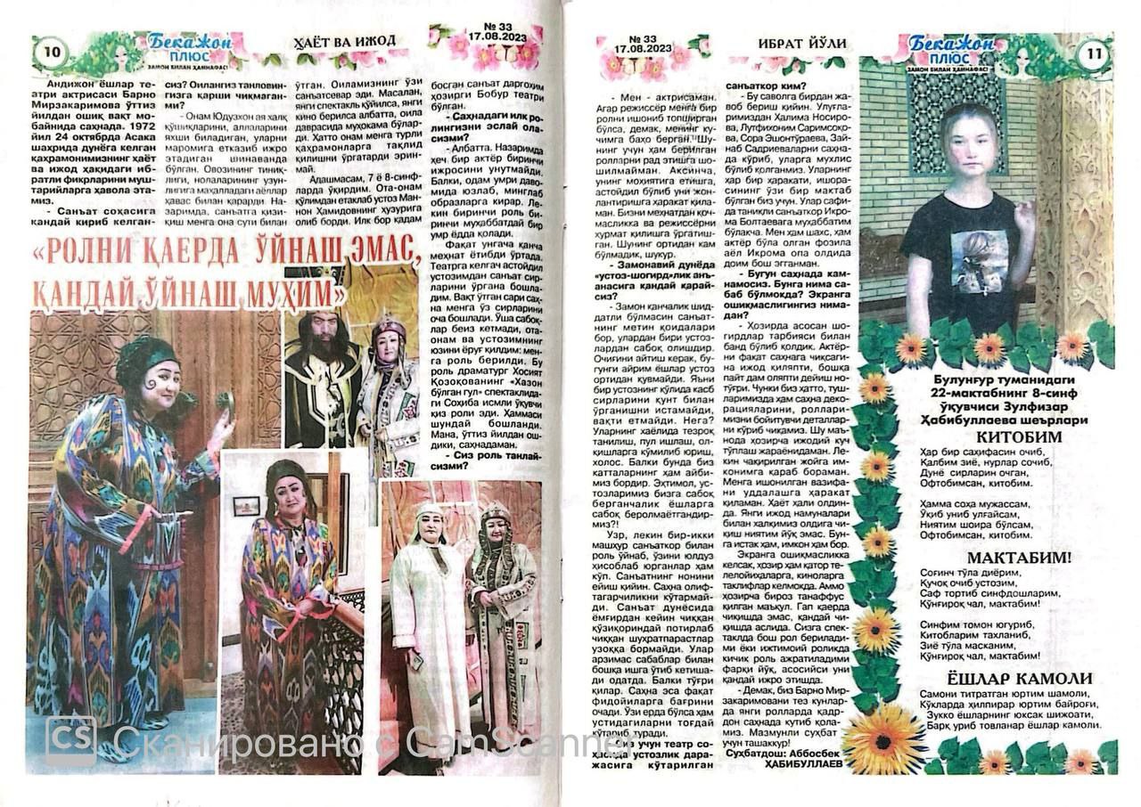 Manba: “Bekajon plyus” 17.08.2023 №33 son