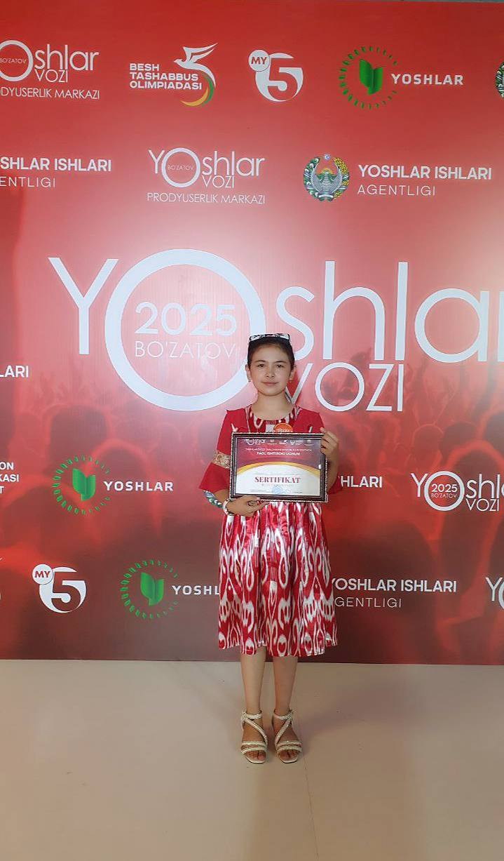 Oltinko‘l tuman 17-son Bolalar musiqa va san’at maktabi “Estrada” yo‘nalishi o‘quvchisi Komolaxon Oltinbekova “Yoshlar Ovozi” Respublika ko‘rik-tanlovida muvaffaqiyatli ishtirok etib, Sertifikat hamda10 million so‘m pul mukofotiga sazovor bo‘ldi!