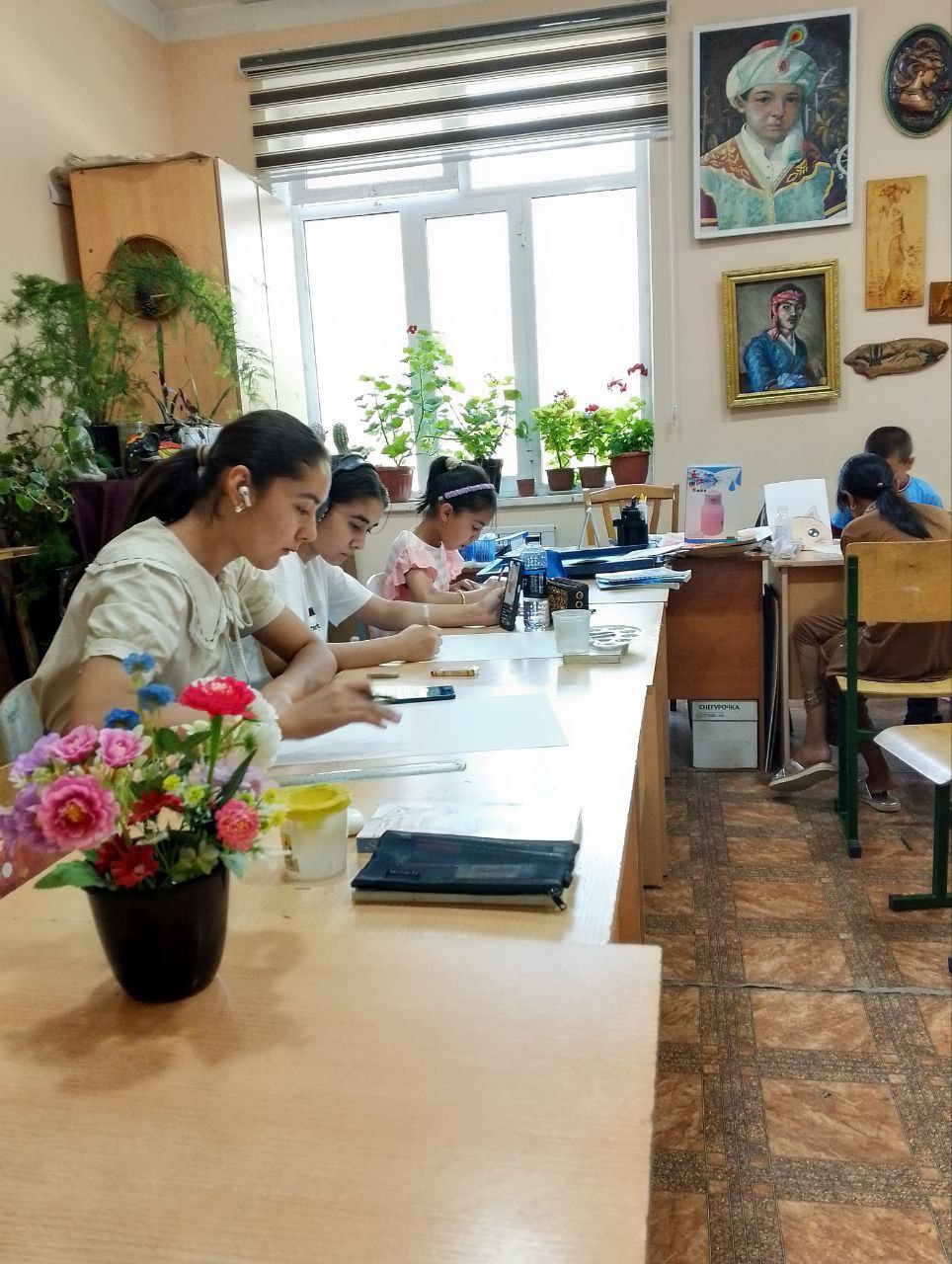 🎨 “Dolzarb 90 kun” loyihasi doirasida Xonobodda ijodiy mashg‘ulotlar davom etmoqda