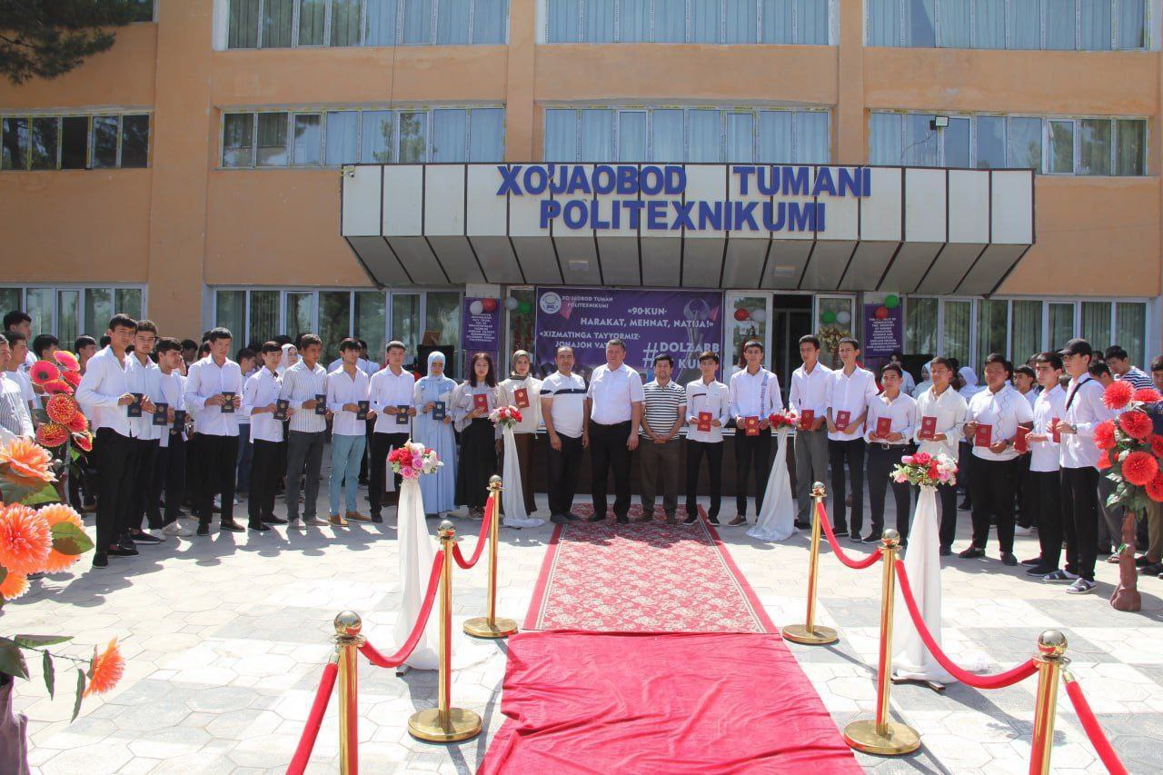 “Dolzarb 90 kunlik” loyihasi doirasida Xo‘jaobod tumani Politexnikumida yurtga sadoqat, milliy g‘urur va harbiy-vatanparvarlik ruhini targ‘ib etishga qaratilgan “Xizmatingga tayyormiz, jonajon Vatan!” nomli bitiruv kechasi tashkil etildi.