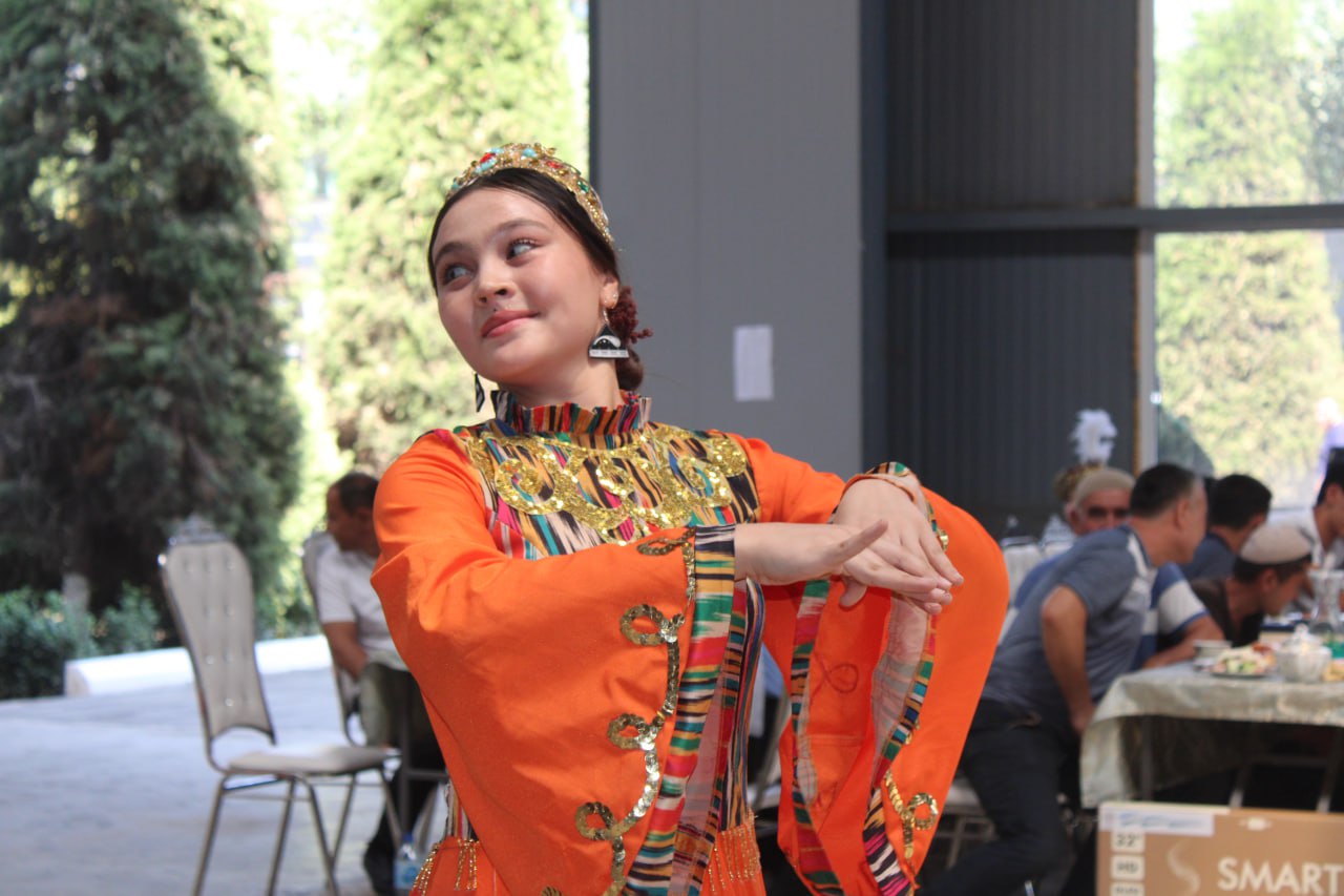 🎭 Tadbirning badiiy qismi O‘zbekiston davlat filarmoniyasi Andijon viloyati bo‘linmasining ijodiy jamoasi tomonidan tayyorlangan bayramona konsert dasturi bilan davom etdi. Xonandalar, sozandalar va raqqosalar tomonidan ijro etilgan dilbar kuy-qo‘shiqlar va jozibali raqslar ishtirokchilarga ko‘tarinki kayfiyat bag‘ishladi.