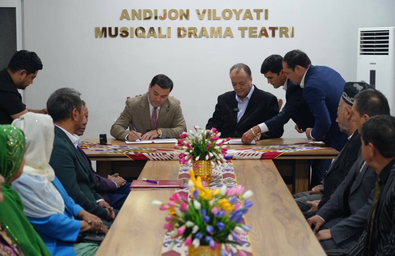 Joriy yilning 4-oktyabr kuni O‘zbekiston davlat san’at va madaniyat instituti rektori, professor Nodirbek Sayfullayev tashabbusi bilan “Sahna nutqi” kafedrasi va Andijon viloyat musiqali drama teatri o‘rtasida 3 yillik hamkorlik shartnomasi imzolandi.