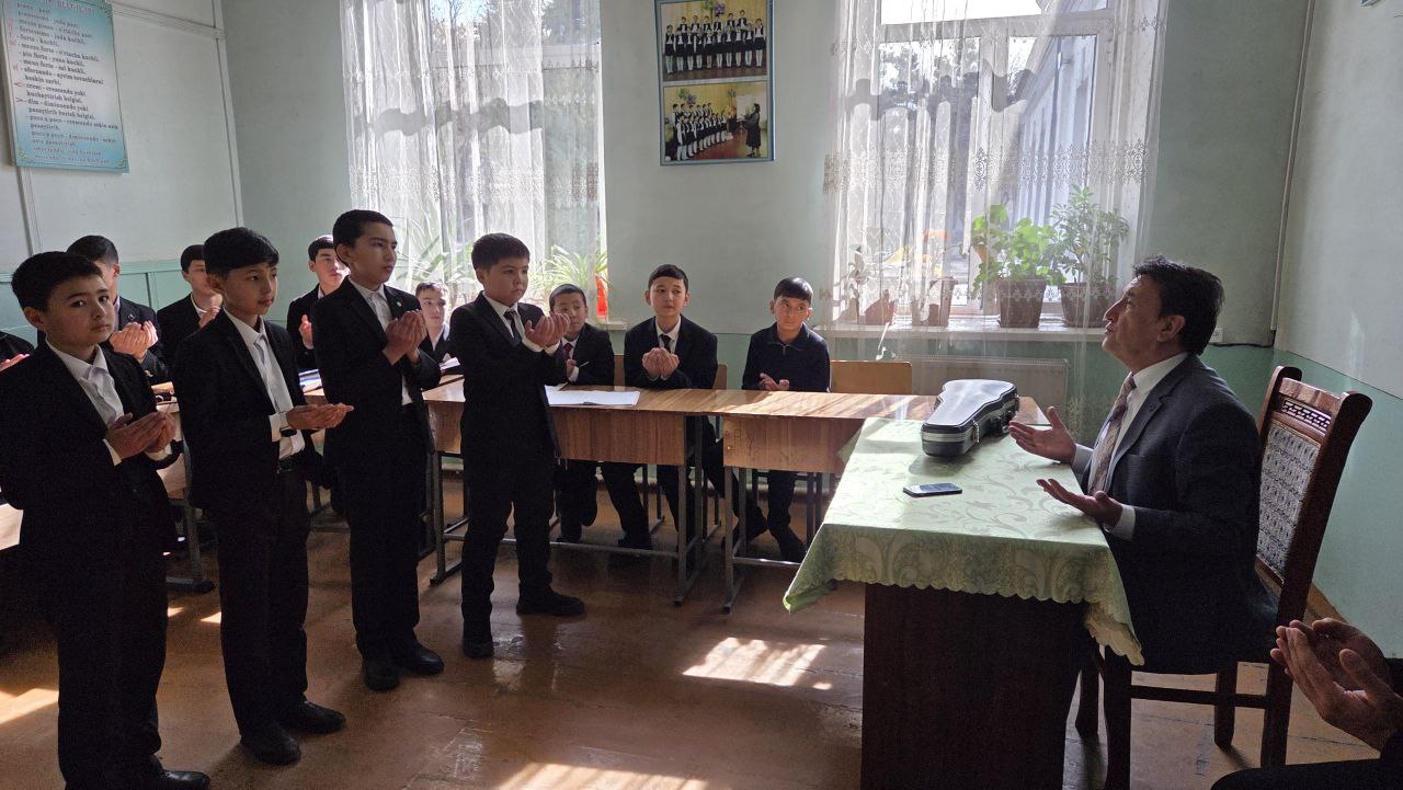 Safar doirasida bugun Tolibjon Sodiqov nomidagi 7-musiqaga ixtisoslashtirilgan maktab-internatida mahorat darslari tashkil etildi.